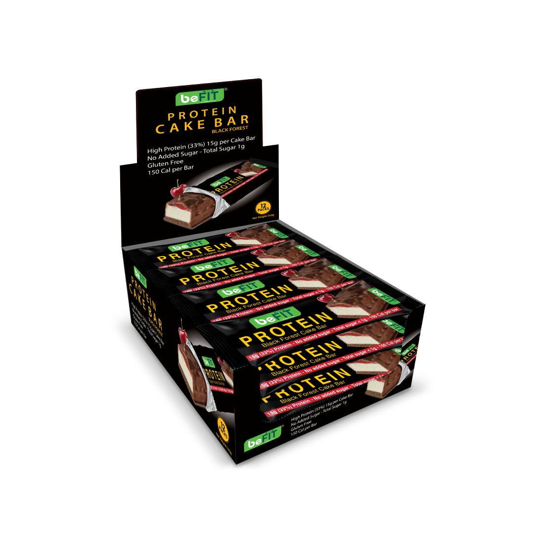 beFIT Cake Bar! Packed with flavor and nutrition, each bar is a powerhouse of goodness. With 15g of premium protein, no added sugar, and no artificial sweeteners, it's the perfect snack for those on the go. Whether you need a quick breakfast replacement or a protein-packed snack to fuel your day, our Keto friendly Crunch Bar has you covered. Our most selling bar translating black forest into a its heathiest version. Enjoy guilt-free indulgence with every bite! 150 Calories Bar - 15g Protein- Keto Friendly - No Added Sugar - No Artificial Sweetener