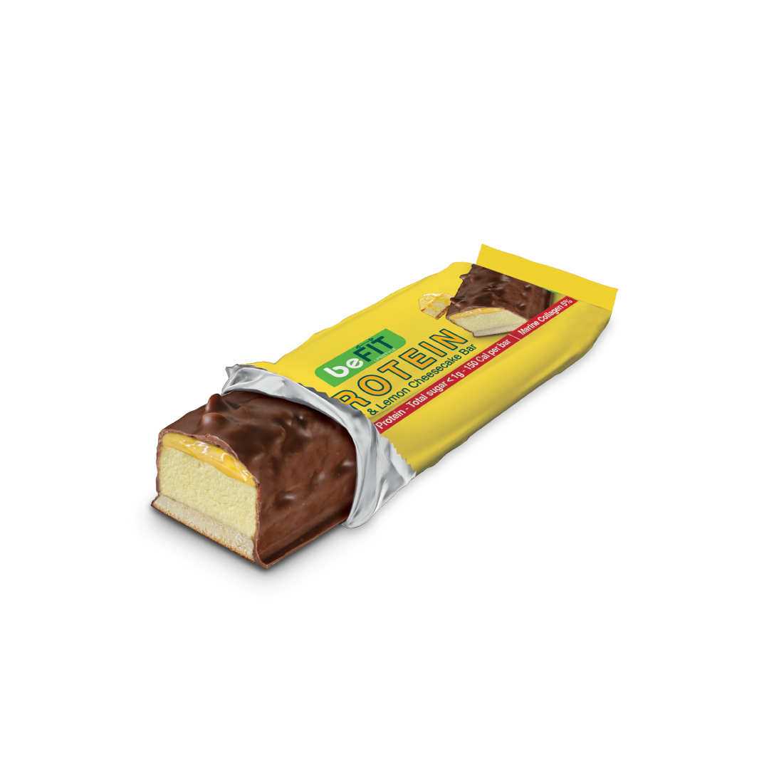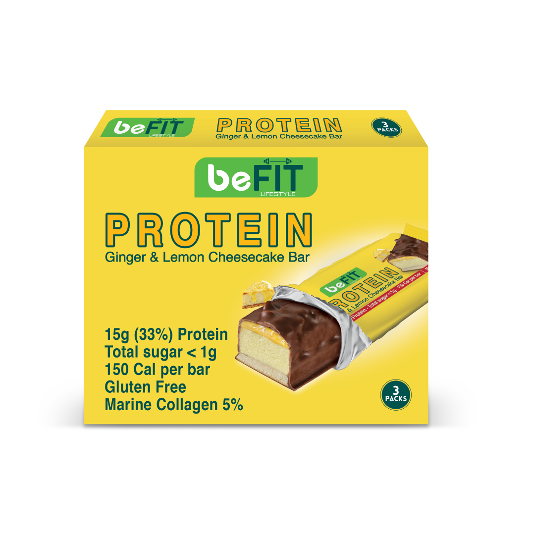 Enjoy a delicious and nutritious snack with our 45g Ginger & Lemon Cheesecake Protein Cake Bar. With 15g of protein (33% ), less than 1g of sugar, and only 150 calories, this gluten-free bar features layers of protein cake and a refreshing lemon and ginger twist. Ideal for a satisfying snack or post-workout treat also contains 5% marine collagen to support your health and beauty.