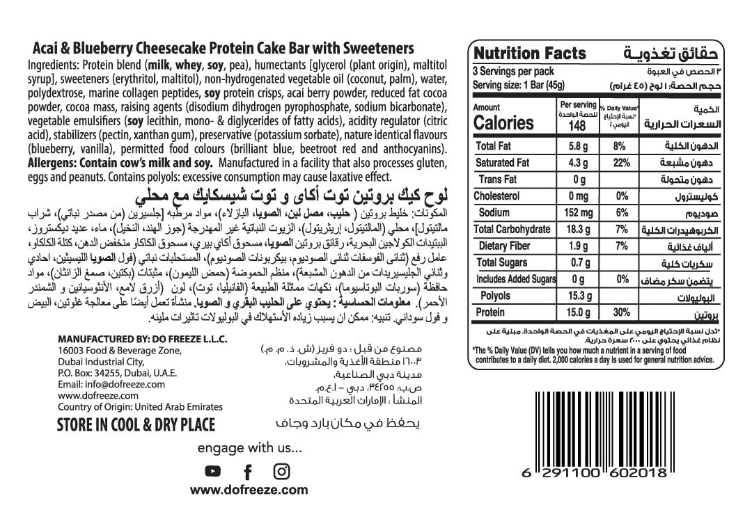 Acai & Blueberry Cheesecake Protein Cake Bar with Marine Collagen 12pcs per pack