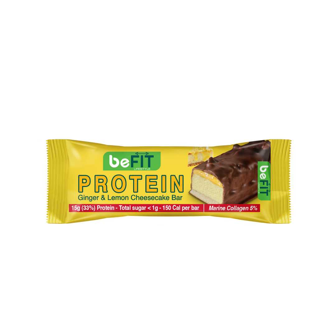 Enjoy a delicious and nutritious snack with our 45g Ginger & Lemon Cheesecake Protein Cake Bar. With 15g of protein (33% ), less than 1g of sugar, and only 150 calories, this gluten-free bar features layers of protein cake and a refreshing lemon and ginger twist. Ideal for a satisfying snack or post-workout treat also contains 5% marine collagen to support your health and beauty.