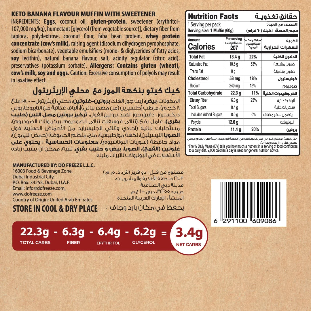 Indulge in our mouth-watering, keto-friendly banana muffin! Moist and flavorful, it's perfect for breakfast, a snack with tea or coffee, or enjoyed on its own. A guilt-free treat for keto dieters, each box contains one 60g muffin sweetened with erythritol—a keto-approved natural sweetener—and boasting just 3g of digestible carbs. Treat yourself to this fiber-rich delight today!