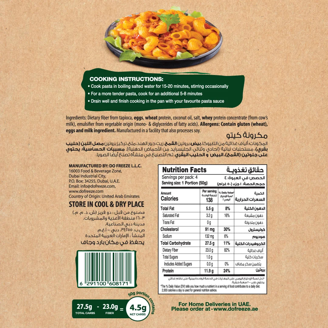 Discover guilt-free indulgence with our high-fiber, low-carb Pasta! Made without wheat flour or sugar, each serving boasts 11g of protein and just 5g of net digestible carbs. Your taste buds won't even notice you're dieting. With its delicious taste and versatility, deciding what to pair it with will be your only challenge. Treat yourself to our flavorful and nutritious pasta today!